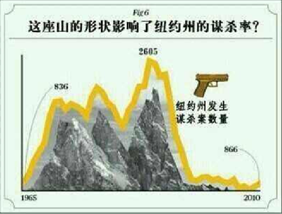 但它们的观点同时出现,我跟你说这个黄色的其实是神指标,下次叫这个名字的小朋友再上升的话,大家赶紧做多房地产有没有道理,这个就荒唐了。这是纽约发现凶杀案的数量,这个(图3)是某一座山的形状,它们有没有关系?没有关系,但是它们呈现高相关性,所以英国的相关性和历史是两码事情。这个概念大家当心,当初我是差点在不可知论的边沿掉下去。